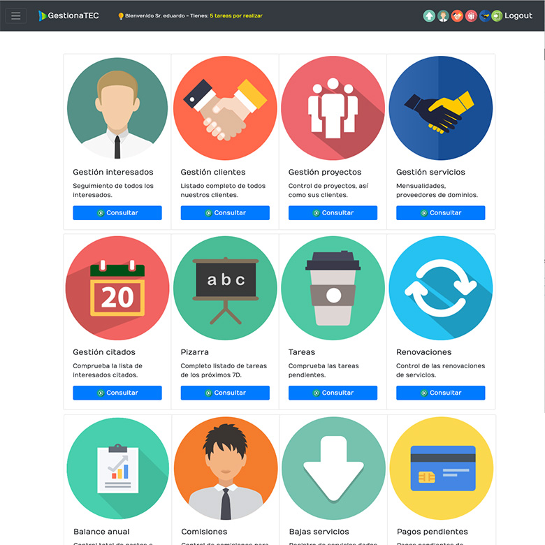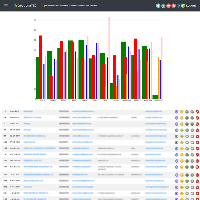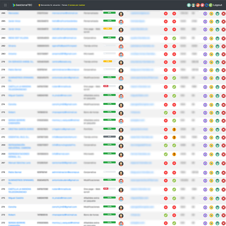 El CRM de gestionaTEC está creado para ser utilizado para cualquier persona, para cualquier negocio y para cualquier sector. Sin ningún tipo de conocimiento informático previo, y lo que es más importante, el CRM irá creciendo junto con la empresa